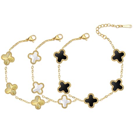 Difonkr 18K Gold Clover Bracelets for Women Simple White Gold Lucky Four Leaf Clover Bracelets Link Set Christmas Jewelry Gifts for Women