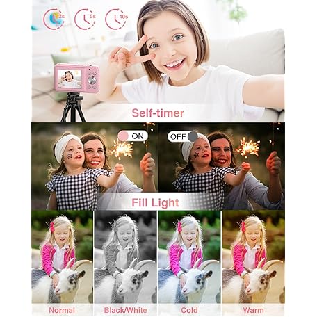 Thông tin sản phẩm Digital Camera, FHD 1080P Point and Shoot Kids Camera, with 32GB Card, 2 Batteries, 16X Zoom Anti Shake Date Stamp, Compact Portable Small, for Starter Kid Children Teen Student Girl Boy(Pink)