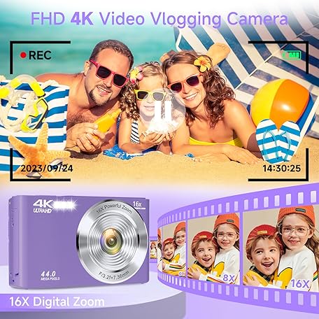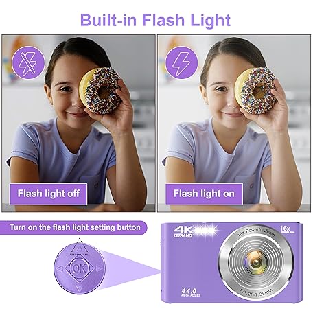 Thông tin sản phẩm Digital Camera for Teens, FHD 4K 44MP Digital Camera Purple with 64GB SD Card 16X Digital Zoom, Cameras for Photography Compact Point and Shoot Camera for Teen Boys Girls Kids Autofocus Camera Digital