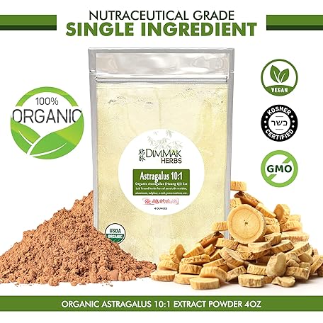 Sản phẩm Dimmak Herbs Organic Astragalus 10:1 Extract Powder | Huang Qi Concentrate Granules | Lab Tested, USDA Organic 4oz / 112g đang được bán với giá ưu đãi là $23.9255 tại nước Mỹ.