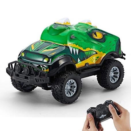 Dinosaur-Shaped Off-Road Vehicle Remote Control Cool Off-Road Vehicle Truck, 2.4GHz RC Car with LED Lights, 1:20Scale, RC Truck, Remote Control car from a Long Distance.Gifts for Boys (Green)
