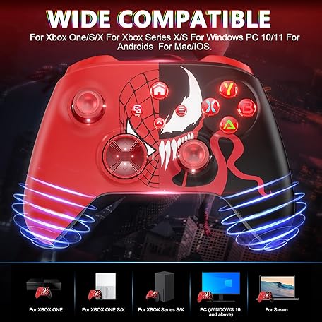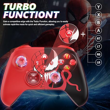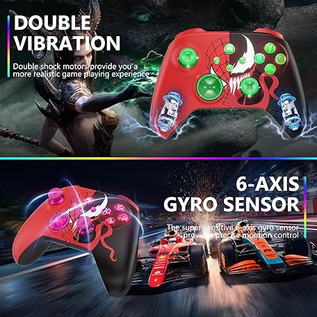 • Dinosoo RGB Wireless Controller for Xbox Series X|S One & PC, with, Bluetooth, TURBO, Macro, 4 Vibration Motors, 3.5mm Audio Jack