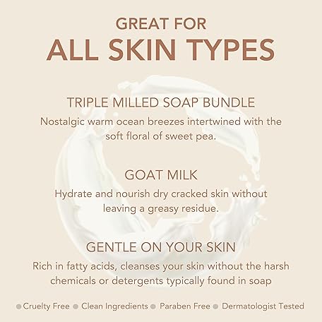 Dionis Goat Milk Sea Treasures Scented Hand and Body Soap Bar, Hydrating Moisturizing Wash for Sensitive Skin, Gentle Lasting Hydration, Cruelty Free, Non Greasy, Paraben Free, Made in the USA, 6 oz