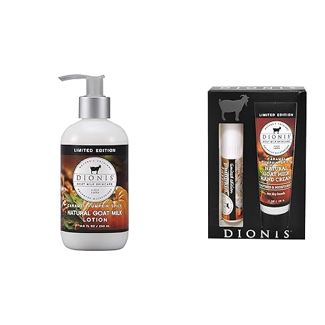 • Dionis Goat Milk Skincare Caramel Pumpkin Spice Scented Hand Cream & Lip Balm Set (1 oz and .28 oz) & Goat Milk & Caramel Pumpkin Spice Lotion (8.5oz)