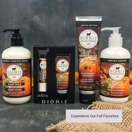 Sản phẩm Dionis Goat Milk Skincare Caramel Pumpkin Spice Scented Lotion (8.5 oz) and Hand & Body Cream (3.3 oz) Bundle đang được bán với giá ưu đãi là $31.6972 tại nước Mỹ.