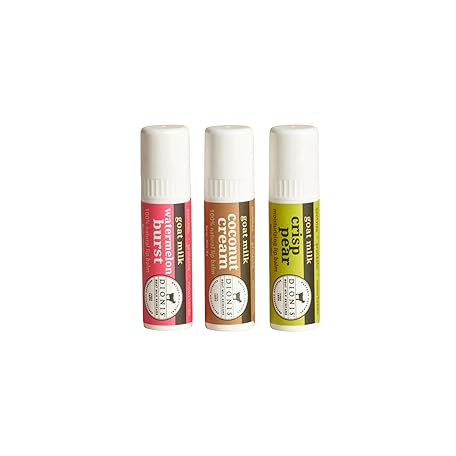 Dionis Goat Milk Skincare Fruity & Delicious Scented Lip Balm Set of 3, Beeswax, Shea Butter & Coconut Oil Self Care Made in The USA, Cruelty-Free, Paraben Free Hydrating Moisturizer for Chapped Lips