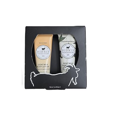 Dionis Goat Milk Skincare Gift Set, Milk & Honey Body Lotion and Southern Magnolia Hand Cream, 1 oz Each, 2 Piece Set