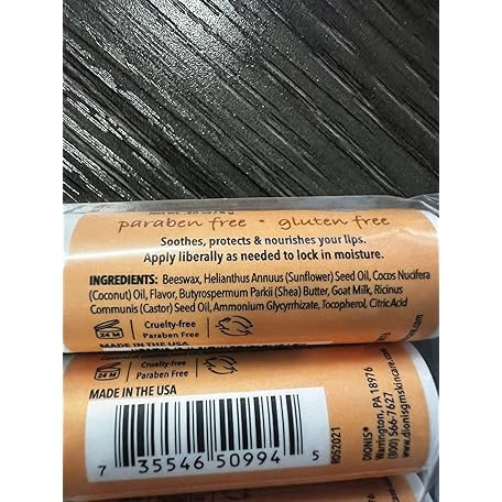Thông tin sản phẩm Dionis - Goat Milk Skincare Scented Lip Balm, Set of 6 (0.28 oz), Moisturize Dry and Chapped Lips, Cruelty-free and Paraben-free (Milk & Honey)