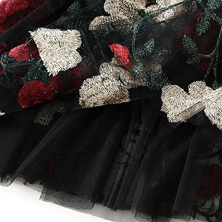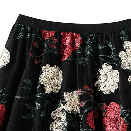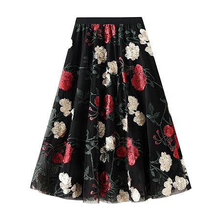 • Dirholl Women's A-Line Fairy Patterned Elastic Waist Ruffle Tulle Layered Midi Skirt