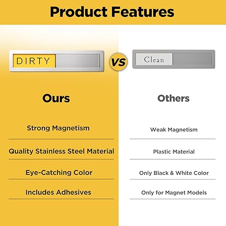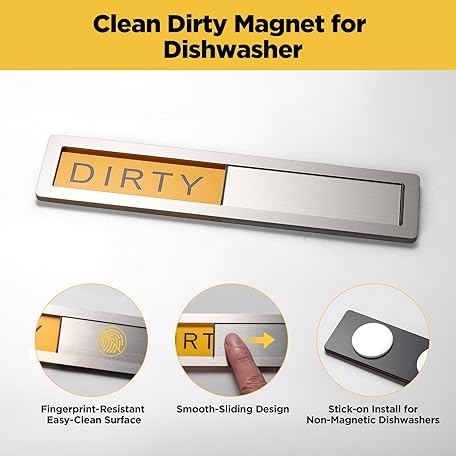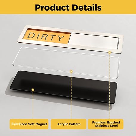 Dishwasher Magnet Clean Dirty Sign - Premium Stainless Steel Kitchen Sign Funny with Three Adhesives Included, Works on Magnetic & Non-Magnetic Surfaces, Kitchen Organizers & Storage Decor Accessories, Silver