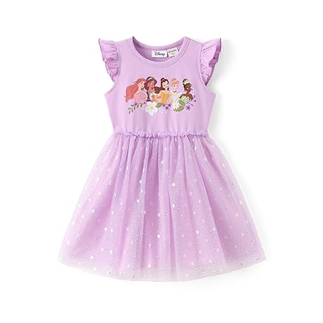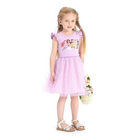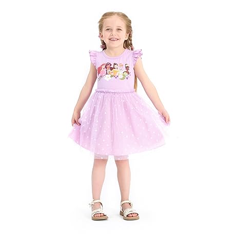 • Disney Frozen Elsa Princess Cinderella Ariel Jasmine Rapunzel Baby/Toddler Dress, Ruffle Long-Sleeve Mesh Overlay Tulle Dress