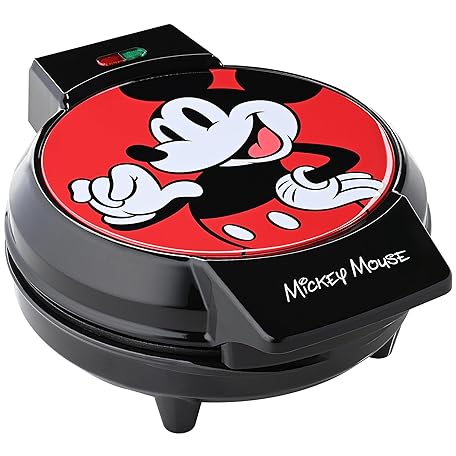 • Disney Mickey Mouse 7" Round Waffle Maker by Select Brands - Premium Mickey Mouse Kitchen Appliance with Ceramic Nonstick Coating - Disney Kitchen Appliances - 7" Mickey Character Waffles