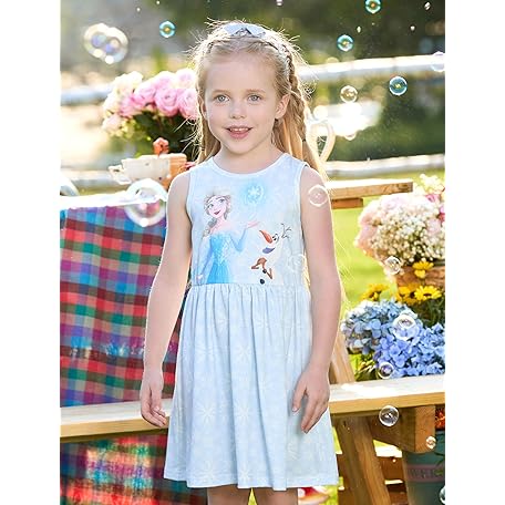 • Disney Princess Frozen Elsa Minnie Mouse Girls Dress Sleeveless Casual Summer Outfit School Holiday Clothes Baby-Toddler