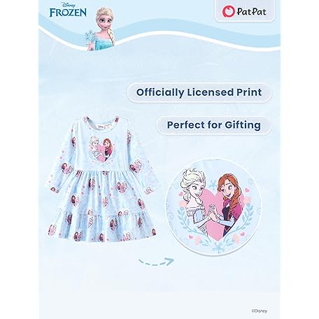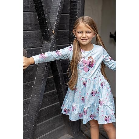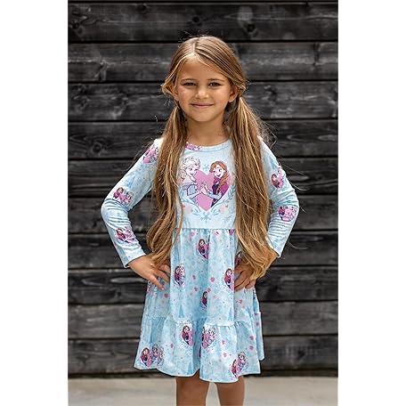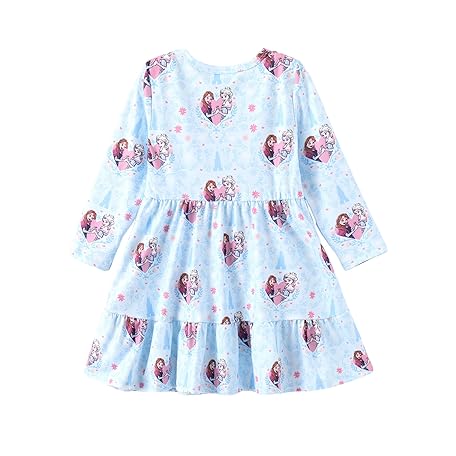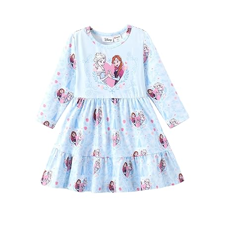 • Disney Princess Frozen Elsa Minnie Stitch Floral Toddler Girl Dress A Line Long Sleeve Kids Casual Fall Clothes 2-6 Years