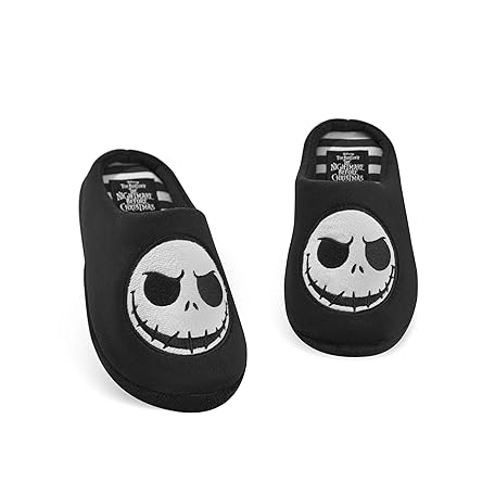 Disney The Nightmare Before Christmas Unisex Slippers | Adults Slip On Mules with Jack Skellington Character Face in Black