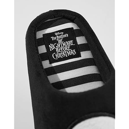 • Disney The Nightmare Before Christmas Unisex Slippers | Adults Slip On Mules with Jack Skellington Character Face in Black