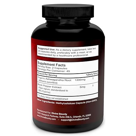 Sản phẩm Divine Bounty Organic Ashwagandha Capsules - 1200mg Ashwagandha Powder with Black Pepper for Enhanced Absorption - Ashwaganda Supplement for Calmness & Mood Support - 90 Veggie Capsules đang được bán với giá ưu đãi là $19.5655 tại nước Mỹ.