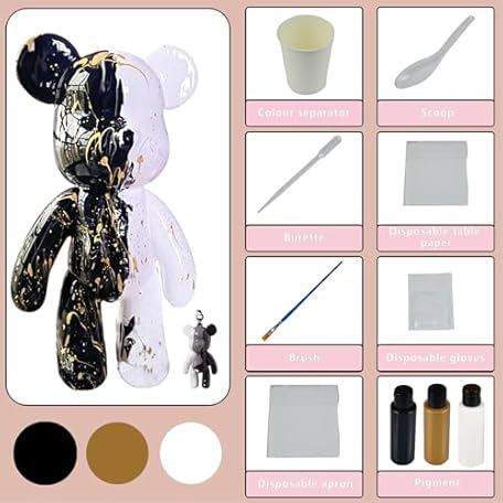 Sản phẩm DIY (Black+White+Gold, 9 Inch) Fluid Bear + Bear Keychain Figure Paint Set for Creative Graffiti Art Multicolor Painting đang được bán với giá ưu đãi là $23.9691 tại nước Mỹ.