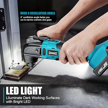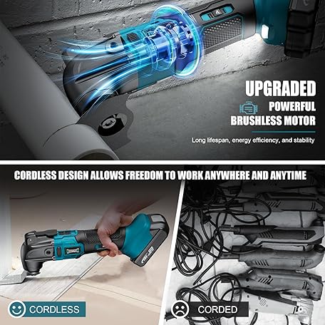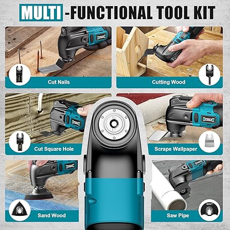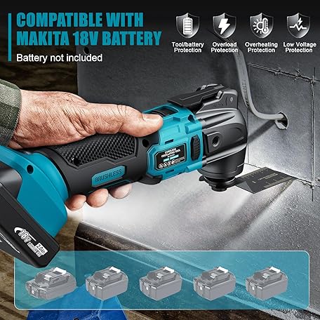 • DIYtoolifz Cordless Oscillating Tool Compatible with Makita 18V Battery, 6 Variable Speed Brushless Tool, Oscillating multi tool kit for Cutting Wood Drywall Nails Remove Grout & Sanding(No Battery)