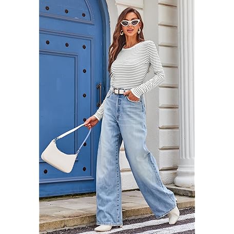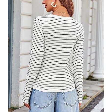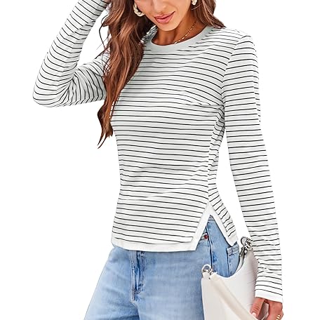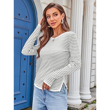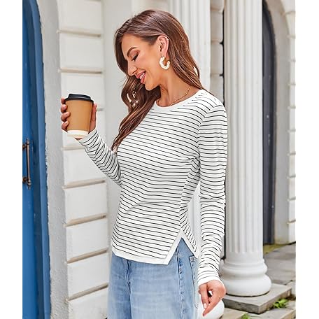 • DJT Women's Long Sleeve T Shirts Crew Neck Color Block One Side Slit Slim Fit Knit Tops Sexy Basic Tee