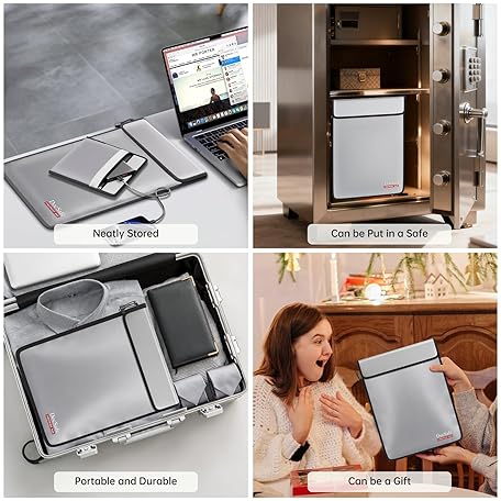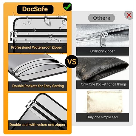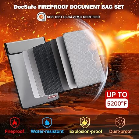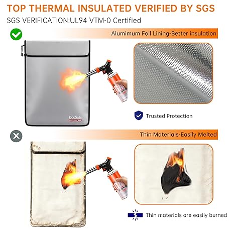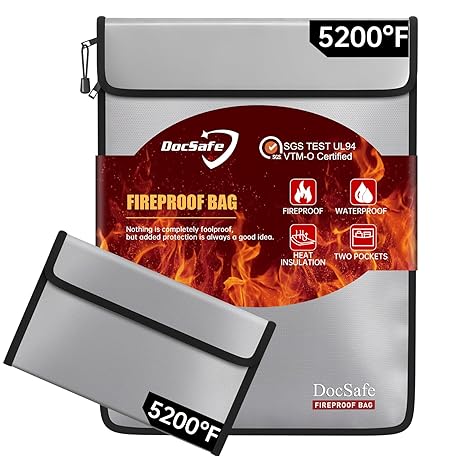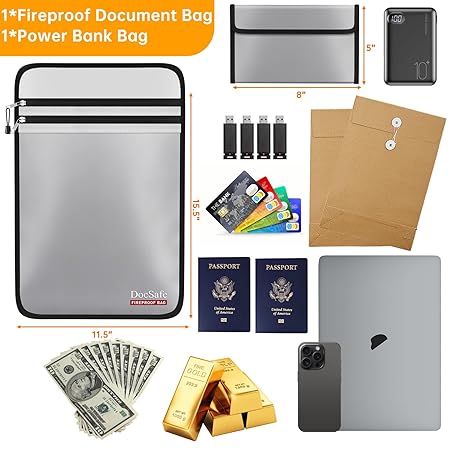 DocSafe Fireproof Document Bag (5200℉) with Fireproof Organizer Travel Case,Heat Insulated Fire&Water Resistant 8 Layers Safe Money Bag Storage for Important Documents,Cash,Power Bank,Valuables,Gray