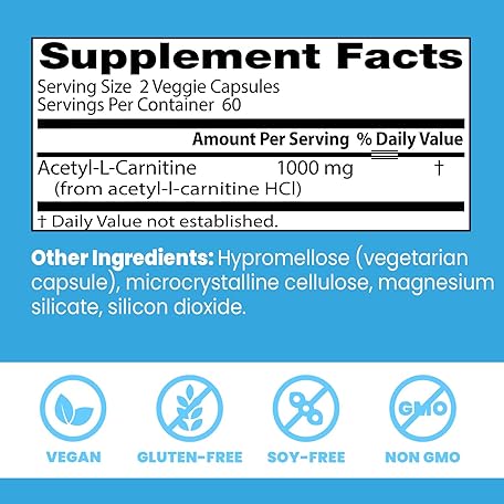 Thông tin sản phẩm Doctors Best Acetyl-L-Carnitine, Supports Mental Focus & Alertness, Non-GMO, Gluten Free, Soy Free, Vegan 120 Veggie Caps