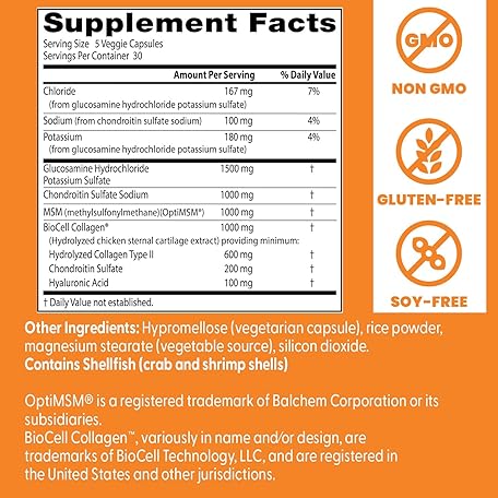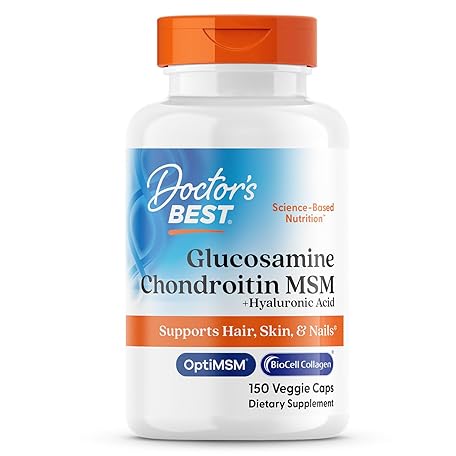 Thông tin sản phẩm Doctor's Best Glucosamine Chondroitin MSM + Hyaluronic Acid with OptiMSM Featuring Biocell Collagen, Joint Support, Non-GMO, Gluten & Soy Free, 150 Caps