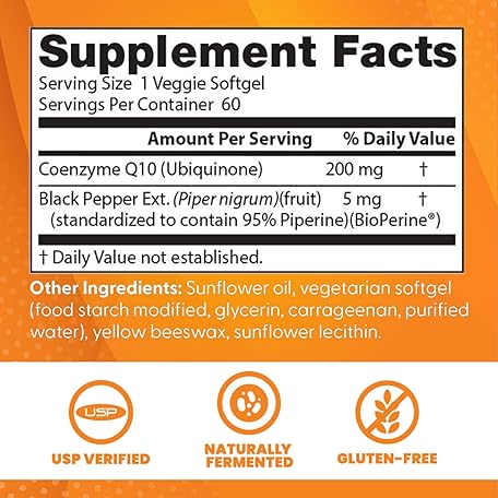 Thông tin sản phẩm Doctor's BEST High Absorption COQ10, Heart & Energy Support, USP Verified, Naturally Fermented CoQ10, Non-GMO Gluten Free, Soy Free, 60 Veggie Softgels