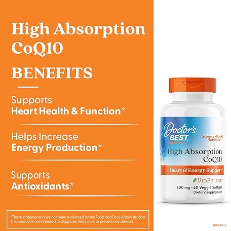 Sản phẩm Doctor's BEST High Absorption COQ10, Heart & Energy Support, USP Verified, Naturally Fermented CoQ10, Non-GMO Gluten Free, Soy Free, 60 Veggie Softgels đang được bán với giá ưu đãi là $23.9691 tại nước Mỹ.