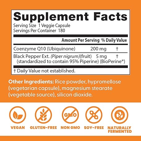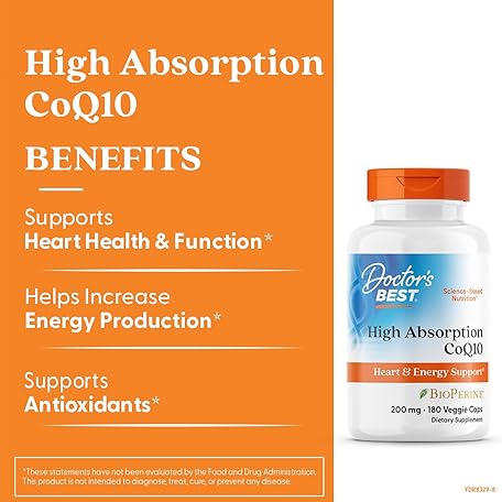 Thông tin sản phẩm Doctor's Best High Absorption CoQ10, Heart & Energy Support, USP Verified, Naturally Fermented CoQ10, Non-GMO Gluten Free, Soy Free, Vegan 180 Veggie Caps