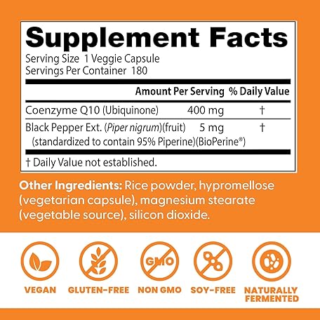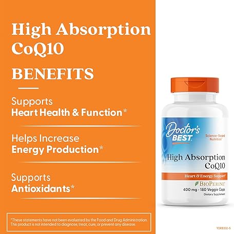 Thông tin sản phẩm Doctor's BEST High Absorption CoQ10, Heart & Energy Support, USP Verified, Naturally Fermented CoQ10, Non-GMO Gluten Free, Soy Free, Vegan 180 Veggie Caps
