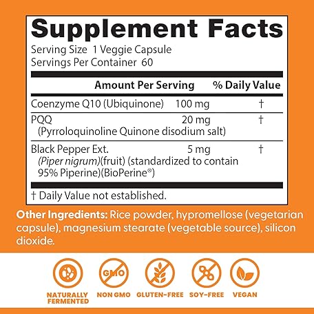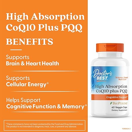Thông tin sản phẩm Doctor's BEST High Absorption CoQ10 Plus PQQ, Cognitive Support, USP Verified, Naturally Fermented CoQ10, Non-GMO, Gluten Free, Soy Free, Vegan 60 Veggie Caps