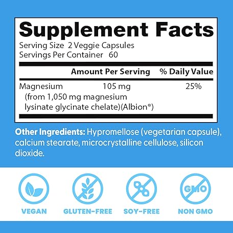 Thông tin sản phẩm Doctor's BEST High Absorption Magnesium Lysinate Glycinate Capsule, Easy to Swallow, 120 Ct