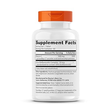 Thông tin sản phẩm Doctors Best High Absorption Vitamin C with PureWay-C, Sustained Release for All Day Immune Support, Non-GMO, Gluten Free, Soy Free, Vegan 60 Tablets