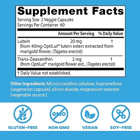 Thông tin sản phẩm Doctors Best Lutein with OptiLut, Supports Eye Health, Non-GMO, Gluten Free, Soy Free, Vegan 120 Veggie Caps