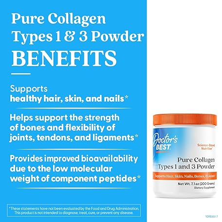 Thông tin sản phẩm Doctor's Best Pure Collagen Types 1 & 3, Promotes Healthy Skin Hair & Nails – Bone & Joint Support, 7.1 Ounce (Pack of 1)
