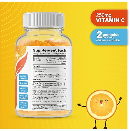 Thông tin sản phẩm DOCTOR'S FINEST Vitamin C Gummies for Kids - Vegan, GMO Free & Gluten Free - Great Tasting Orange Flavor Pectin Chews - Kids Dietary Supplement - 250 mg of Vitamin C - 120 Jellies [60 Doses]