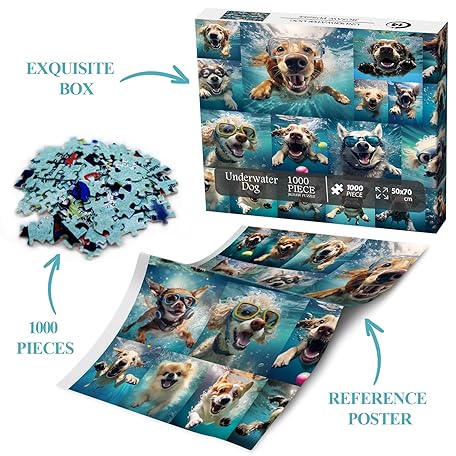 Thông tin sản phẩm Dog Jigsaw Puzzle for Adults 1000 Piece, Funny Puppy Animal Jigsaw Puzzles, Fun Cool Silly Puzzle with Underwater Dogs