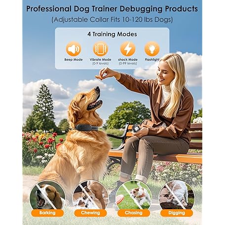 Dog Shock Collar with Remote Control - Shock Collar for Dogs IPX7 Waterproof Dog Training Collar with Beep Vibration Static Correction Flashlight Long-Lasting Battery Safe Training for dogs 10–120 lbs