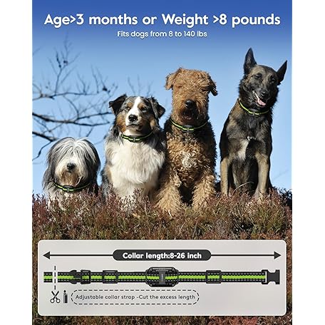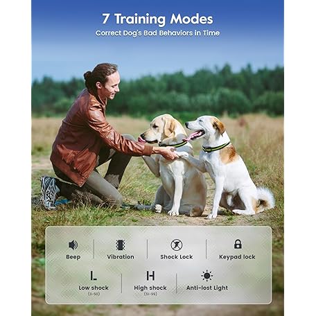 Thông tin sản phẩm Dog Training Collar with Remote, 4200FT Electronic Dog Shock Collar with Beep, Vibration, Shock, Light and No Shock Mode, Electric Training Collar Set for Small Medium Large Dogs (Black Green)