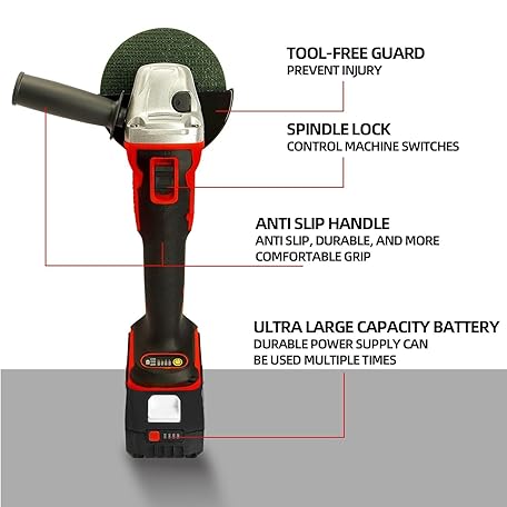 Thông tin sản phẩm DogChrymion 20V Cordless Angle Grinder, Compatible with Makita 18V Battery, 8500 RPM, for 4-1/2'' Disc, 4 Power/Speed Levels,comes with 2 * 4.0Ah Batteries and Charger
