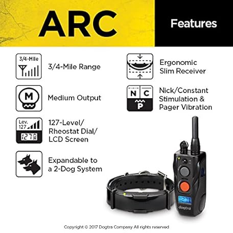 Thông tin sản phẩm Dogtra ARC Remote Training E-Collar - 3/4 Mile Range - Static Stimulation, Vibration, Audible Tone, Waterproof, Rechargeable, Expandable Dog Training Collar with Remote for Small, Medium, Large Dogs