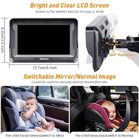 Thông tin sản phẩm DoHonest Baby Car Camera HD 1080P - Rear-Facing Car Baby Monitor with Night Vision, Adjustable View Angle, Easy Setup, Anti-Glare Display, Safety for Kids & Infants