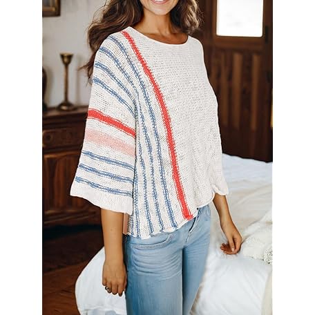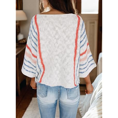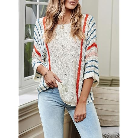 Sản phẩm Dokotoo Womens 2025 Fall Casual Crewneck 3/4 Sleeve Striped Lightweight Knit Trendy Boho Tops Pullover Sweaters đang được bán với giá ưu đãi là $39.2182 tại nước Mỹ.