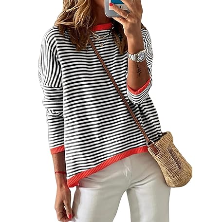 Sản phẩm Dokotoo Women's Long Sleeve Sweaters Casual Crewneck Fashion Fall Striped Color Block Shirts High Low Pullover Sweater Tops đang được bán với giá ưu đãi là $29.4082 tại nước Mỹ.