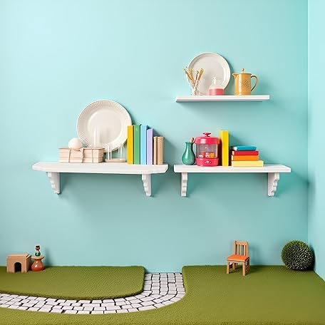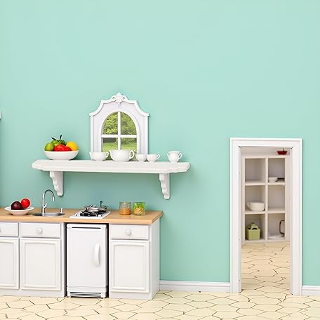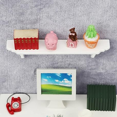 • Dollhouse Wall Shelf, 1:12 Scale Miniature Dollhouse Accessories, White Doll House Storage Wall Shelf for Kitchen Scene White