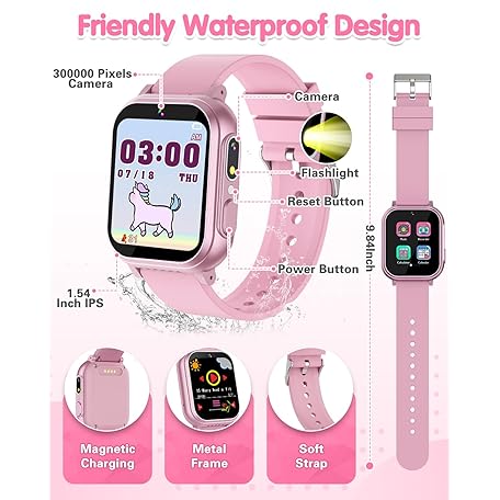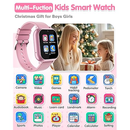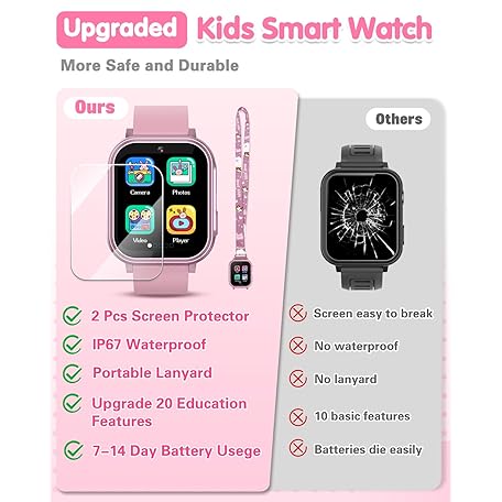 Thông tin sản phẩm Dolwenqi Kids Waterproof Smart Watch Girls Toys Age 6-8, Kids Watch with 32 Games Dual Camera HD TouchScreen Music Habit Tracking Alarm Pedometer Christmas Birthday Gifts Ideas for Girls 3-12 Year Old(Pink)