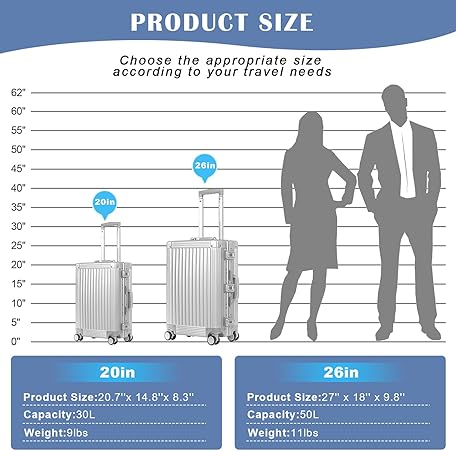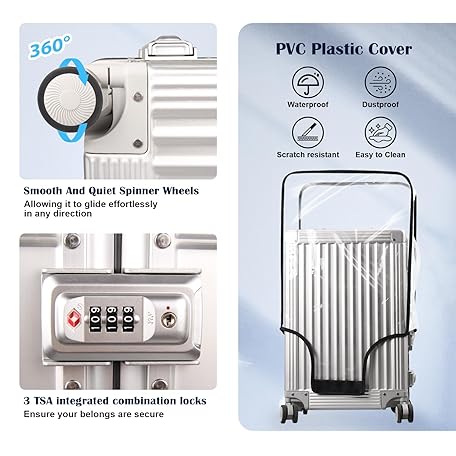 Thông tin sản phẩm DOMINOX All Aluminum Carry On Luggage Hard Shell Luggage Aluminum Suitcase for Travel Zipperless Luggage Checked Luggage with Silent 360° Spinner Wheels 26 In. (Vertical Grain Style, Sliver)