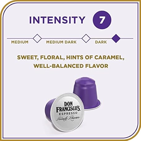 Thông tin sản phẩm Don Francisco's Organico Espresso Pods: 80 Dark Roast Aluminum Capsules, Intensity 7, Compatible with Nespresso Original Line Machines - Bold Cuban-Style coffee with Caramel Notes