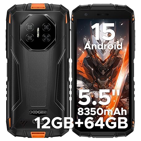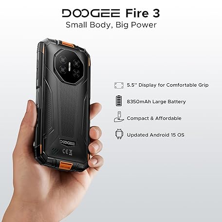 DOOGEE Fire 3 Android 15 Rugged Phone Unlocked,8350mAh Battery,12GB+64GB/2TB,Octa Core Rugged Smartphone,5.5" IPS HD+ Display,13MP+8MP,IP68 Waterproof Cell Phone,Face Unlock,NFC/T-Mobile